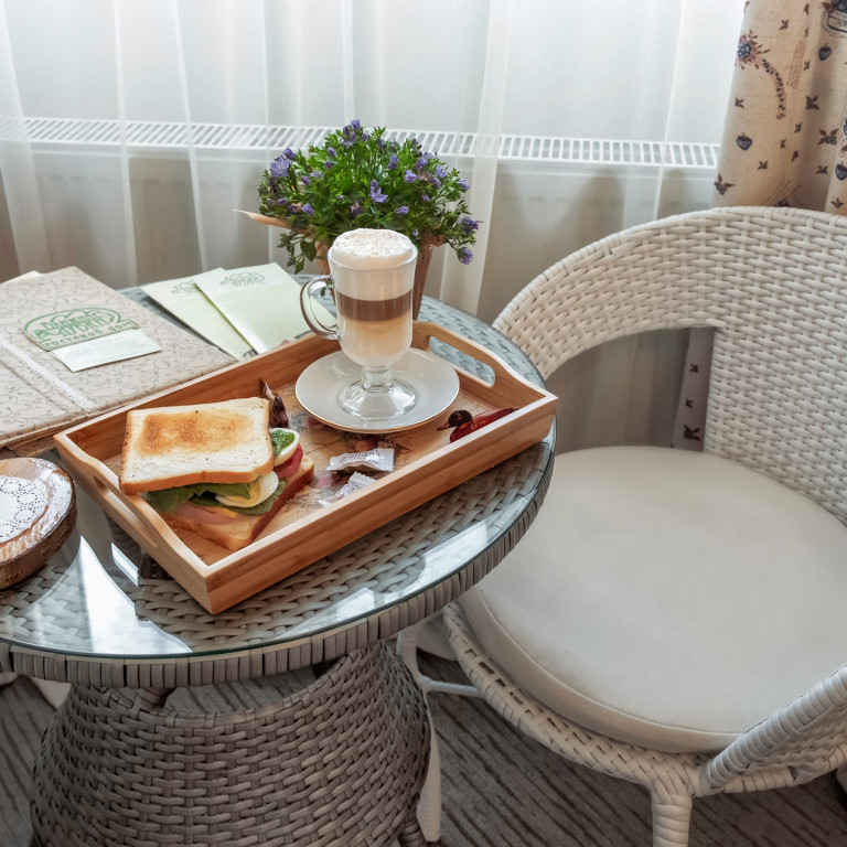 ​,Семейный номер (52 кв м) — спальная и обеденная зоны, раскладной диван