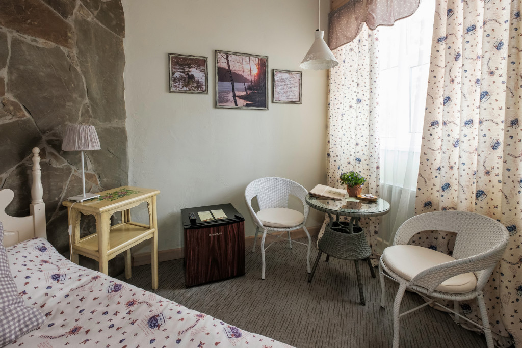 Трехэтажное здание отеля располагает номерным фондом в 20 номеров, который позволяет одновременно разместить до 48 гостей.